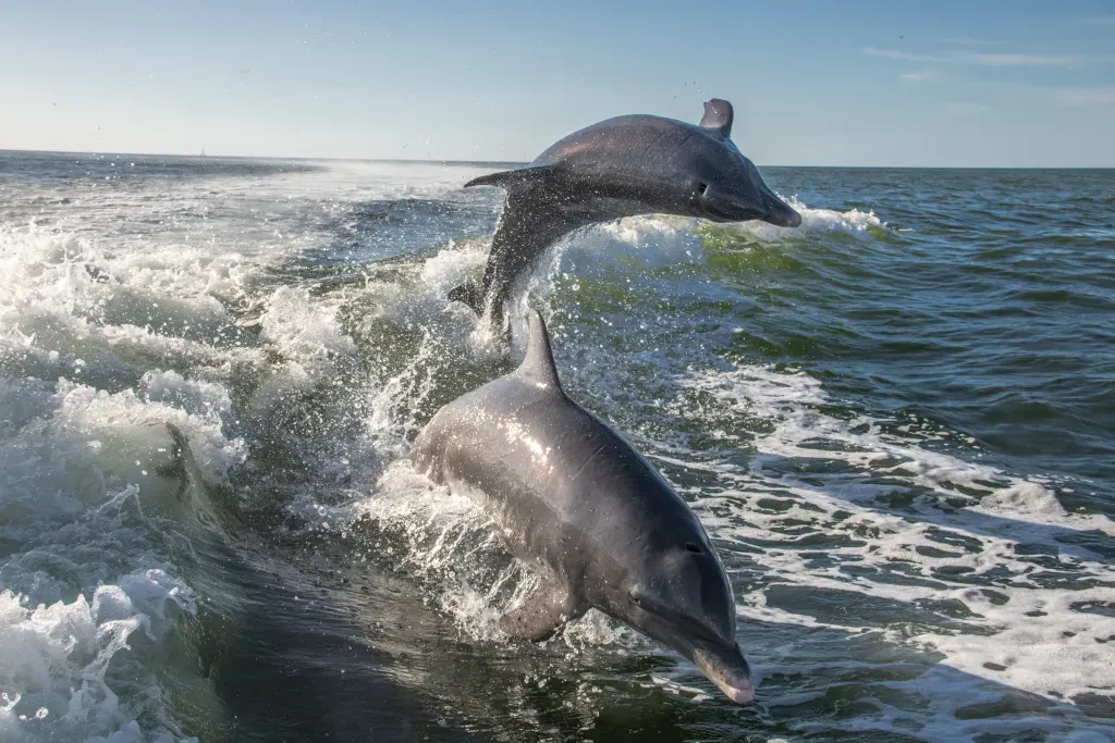 Bottlenose dolphins are the stars of Tampa Bay, and these intelligent mammals put on quite a show throughout the year. Adults typically measure 8-12 feet long and can weigh up to 500 pounds, but don't let their size fool you – they're incredibly playful and curious around boats. You'll often see them bow-riding, where they surf the pressure wave created by the boat's movement, sometimes coming within arm's reach of excited passengers. Dolphins are most active during feeding times in early morning and late afternoon when they work together to herd schools of mullet, pinfish, and other bait into shallow water. What makes Tampa Bay special is the year-round resident population, meaning excellent viewing opportunities regardless of season, though summer months tend to produce more surface activity and acrobatic displays.
